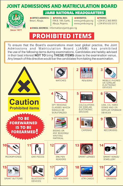 Complete List of JAMB 2026 Prohibited Items